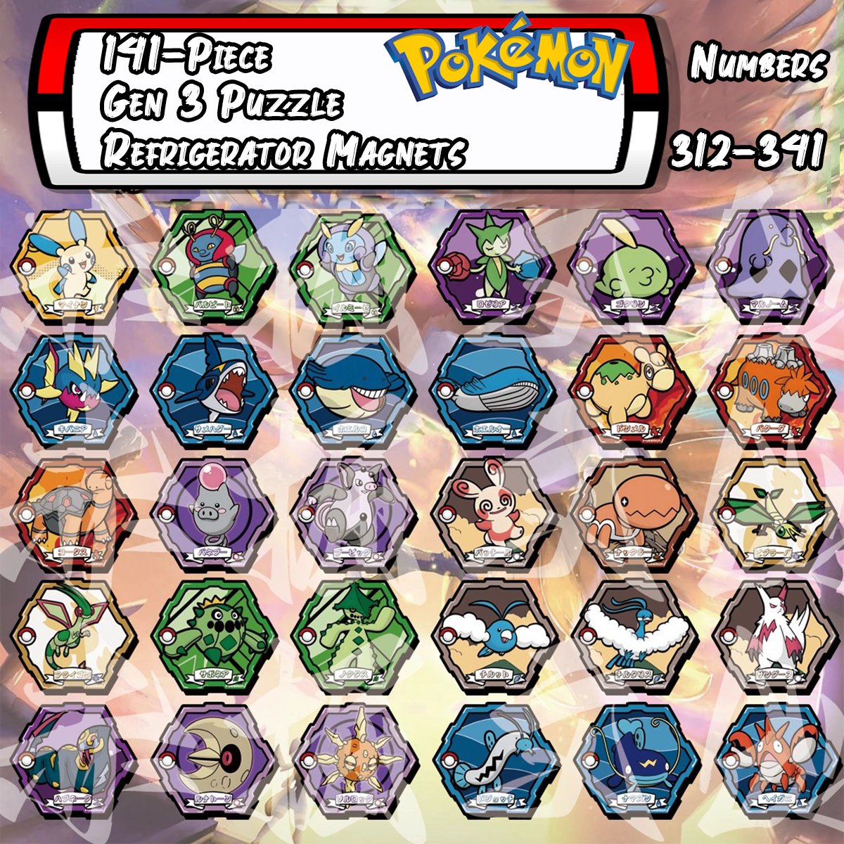 Bring the world of Pokémon to your home with this 151-piece DIY magnetic puzzle set! Each piece features a beloved Pokémon from the 3rd Generation, perfect for decorating your fridge or any metal surface.